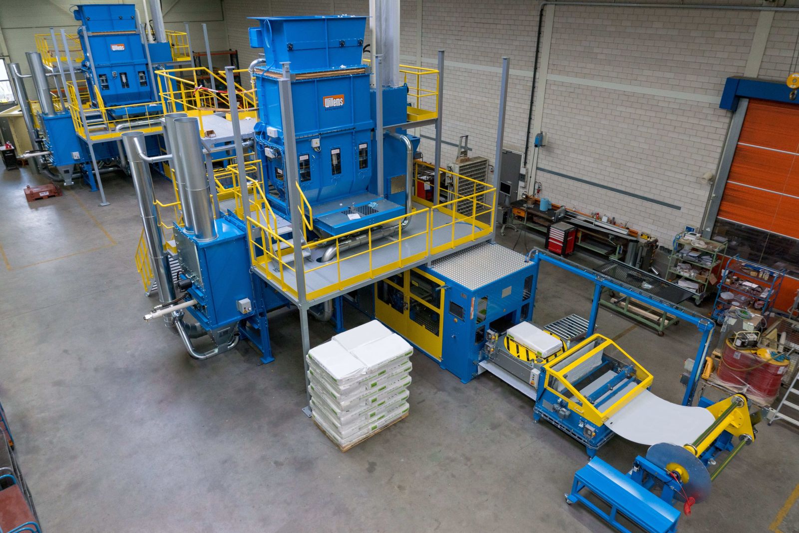Um dem ansteigendem Verbrauch von Brennstoffen entgegenzuwirken werden Gebäude und Häuser immer besserïisoliert. Der Bedarf an Isoliermaterial steigt; Viele Isolierungsmaterialien werden aus Glaswolle hergestellt. Glaswolle ist ein voluminöses Produkt, wodurch der Transport kostenintensiv werden kann. Das richtige und kompakte Verpacken von Glaswolle ist eine anspruchsvolle Aufgabe. Glaswolle kann nur in beschränktem Maße zusammengedrückt werden, damit die Glasfasern nicht brechen, wodurch ihr Isolierwert verloren gehen würde. Die Isolierpressen (HVH balenpers) der Willems Baling Ballenpressen von 17 kg mit einem Umfang von 1000 x 600 x 200 mm. Die Ballen können mit einem Roboter gestapelt und geladen werden. Ein Projekt in Frankreich zeigt die Maschine in den kundenspezifischen Farben.