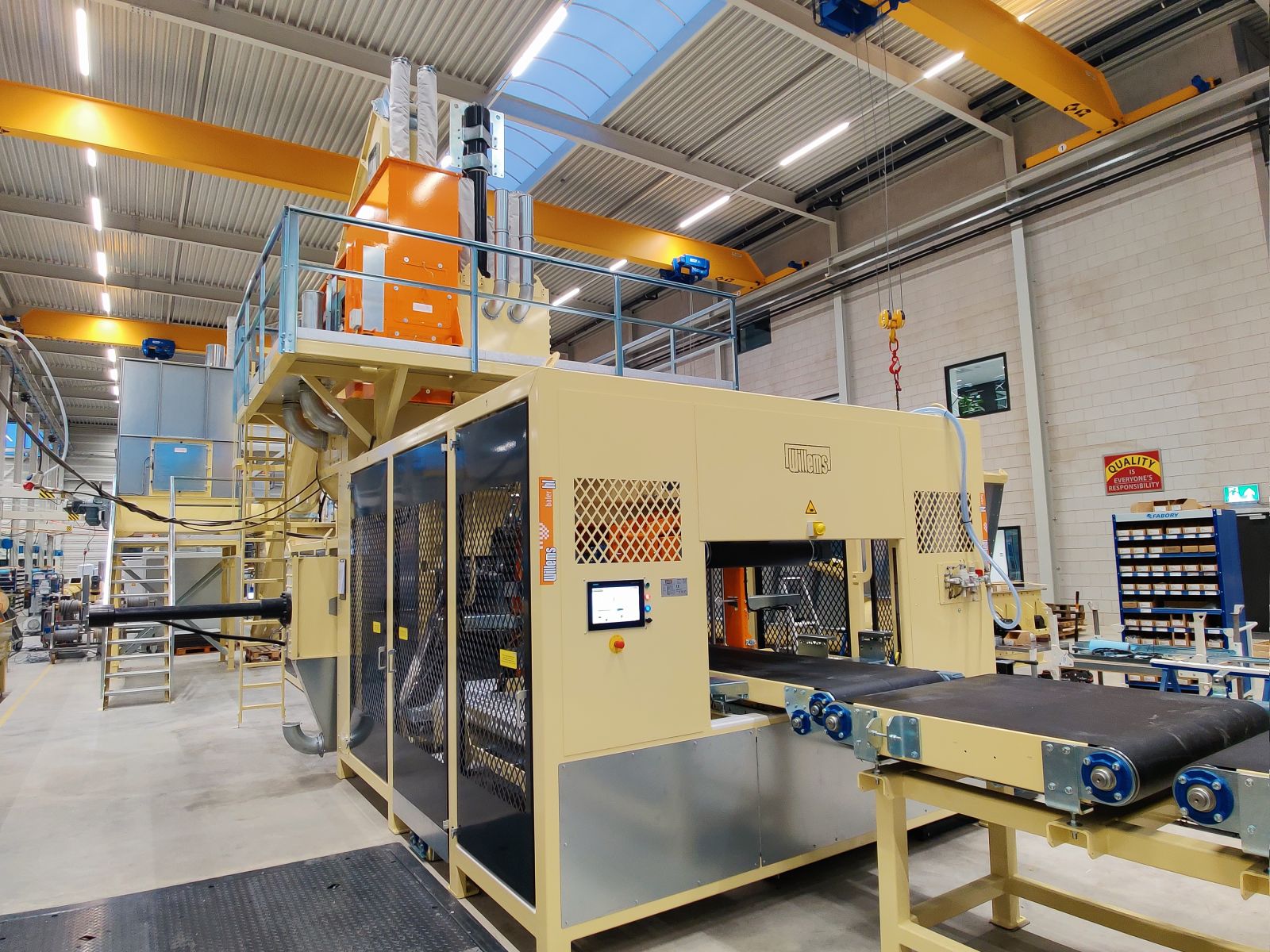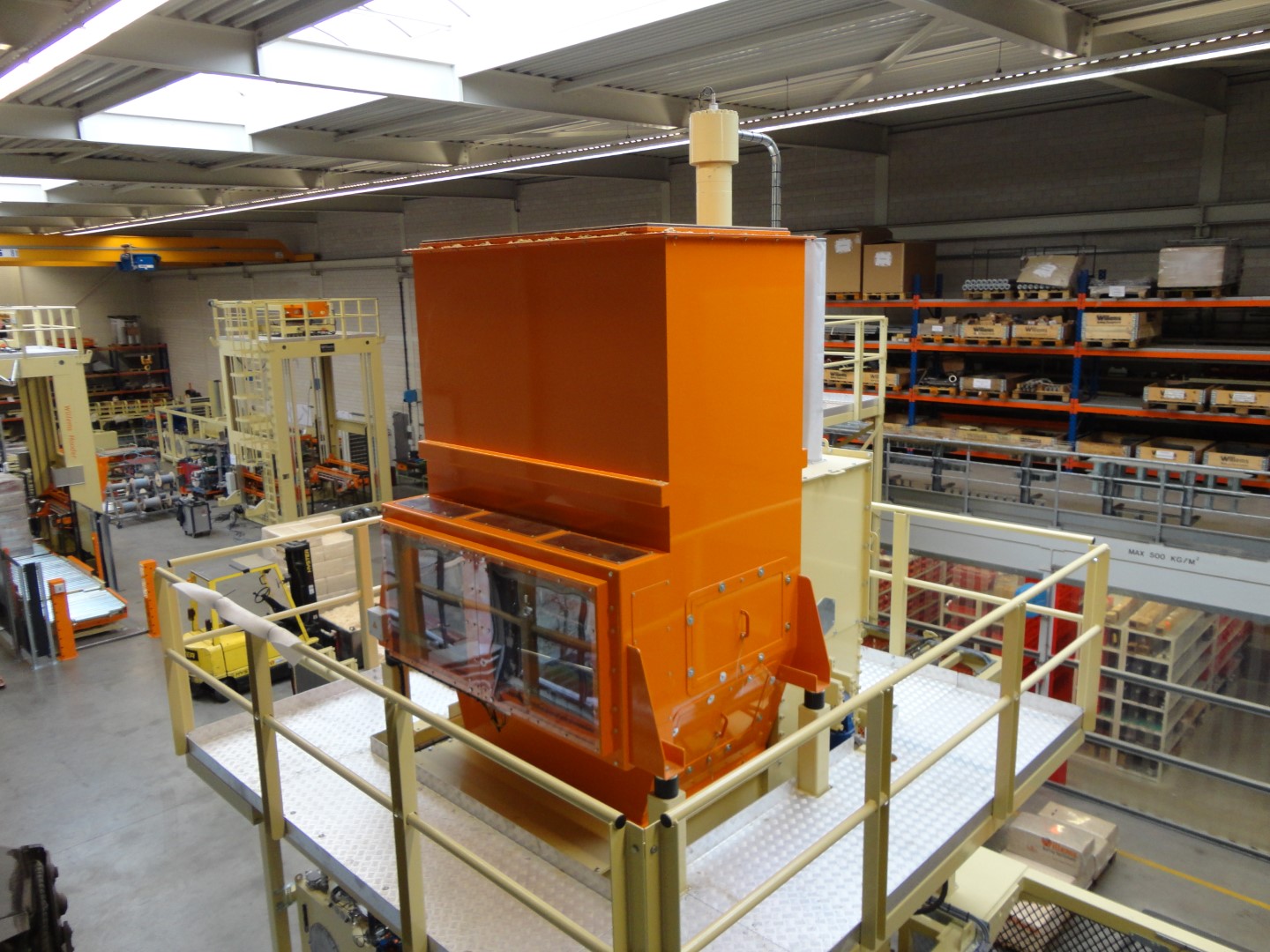 Die Maxiballenpresse presst und verpackt „Maxi Bales“ (Big Bale) bis 300 kg. Grundsätzlich eignet sich die Maxi Ballenpresse für Produkte mit einer geringen Dichte, wie Holzspäne, Glasfasern und Isoliermaterial. Aber auch andere Produkte können damit gepresst und verpackt werden. Die Maxi Ballenpresse kann beispielsweise auch hervorragend mit einem Zu- und Abtransportsystem, mit dem Reiniger und einem Roboter-Palettier kombiniert werden. Durch den Einsatz dieser Maschinen konnten wir bei einem Kunden in Frankreich