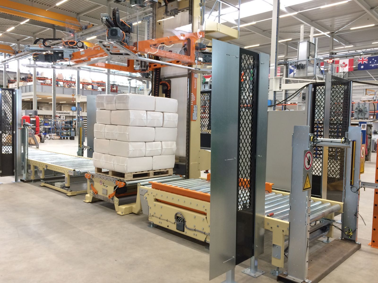 Hoodie L integriert in bestehende Roboter-Palettierer-Linie.
