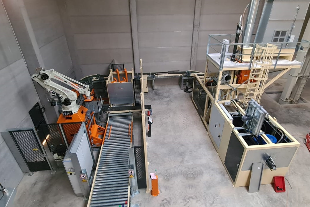 Die Ballenpresse verarbeitet mehr als 5.000 kg Flachs pro Stunde und der Roboter stapelt die Ballen auf einer Palette. Der Haubenstretcher (Hooder L) zieht dann eine schützende Stretchhaube über die Palettenladung. Die Haubenstretchabdeckung bietet kompletten Schutz vor Schmutz, Staub und Nässe und schützt die Produkte zudem vor Kratzern und Oberflächenbeschädigungen.