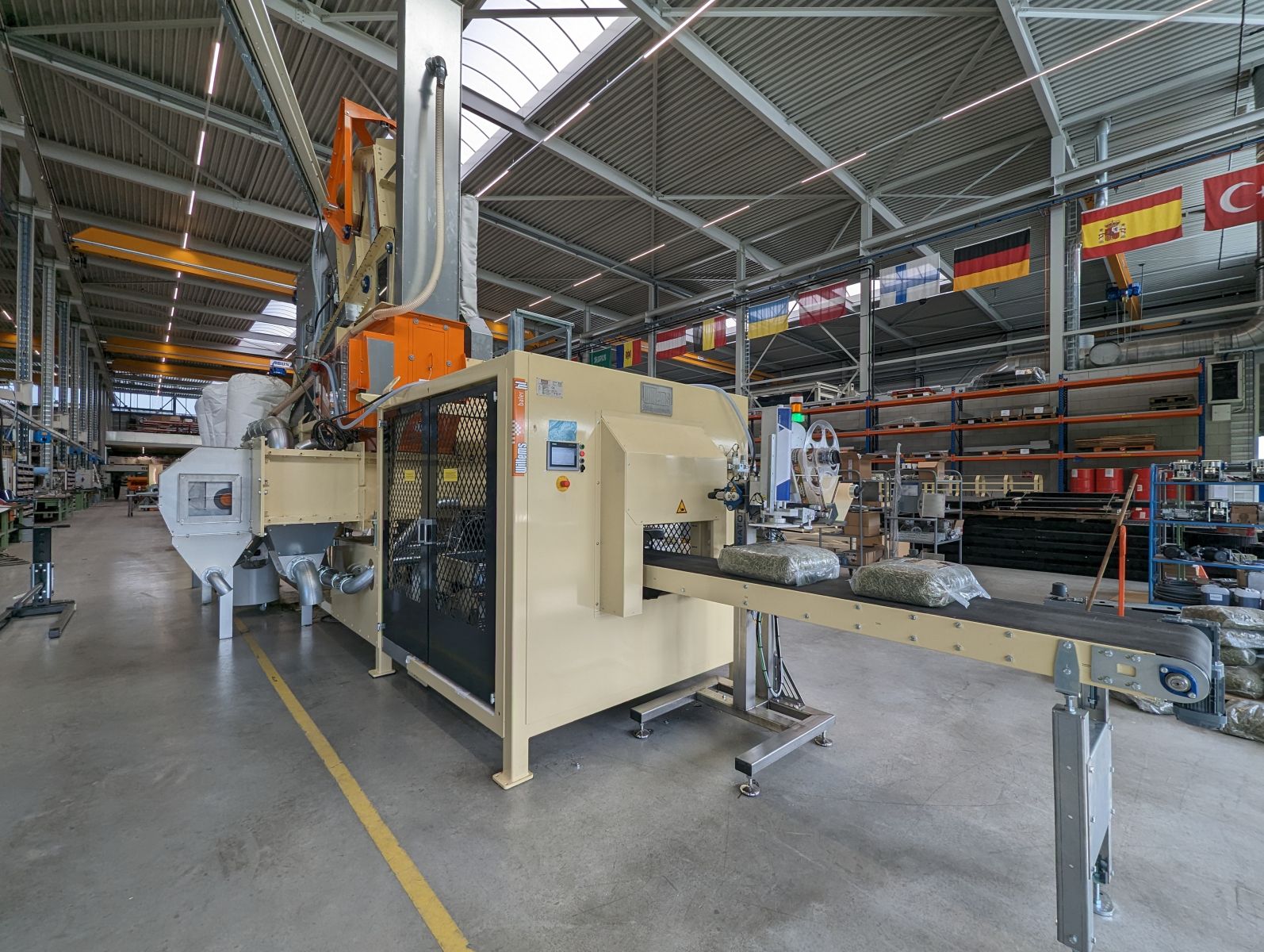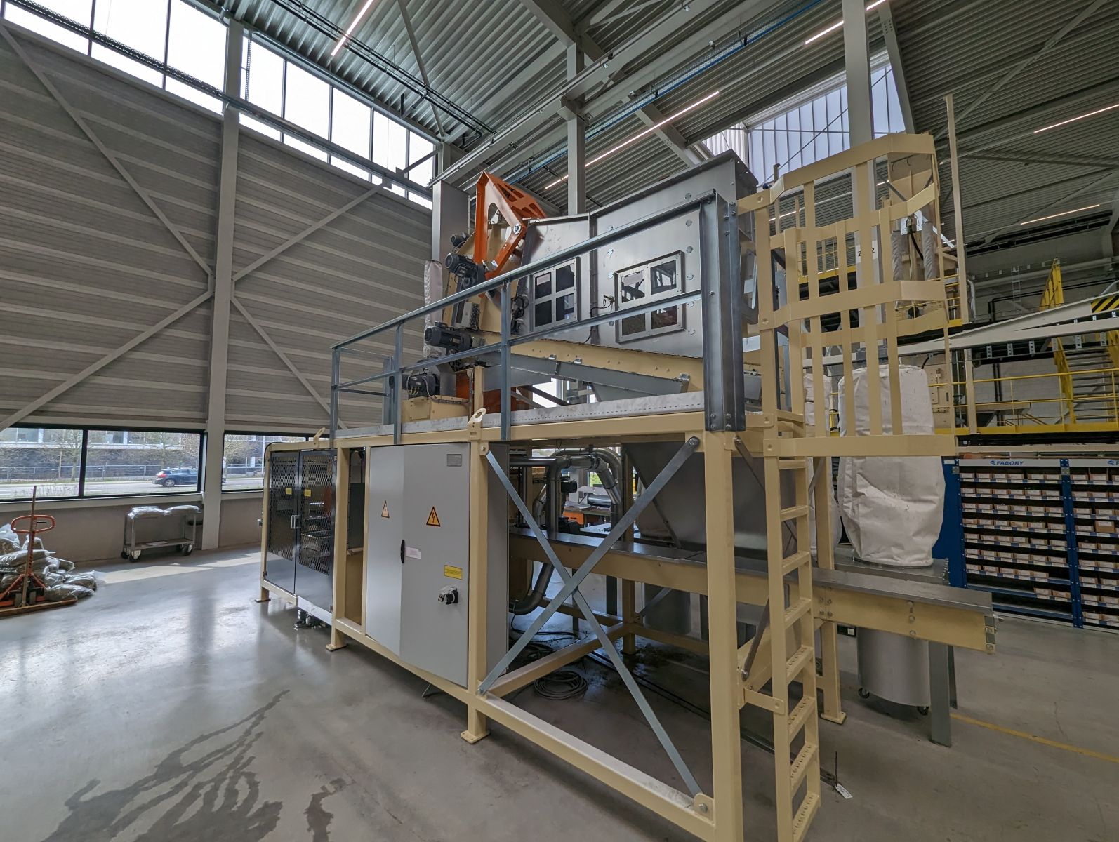 Ein Dosierband fördert das Produkt in den elektronischen Netto-Wiegebehälter. Eine Software sorgt dafür, dass das gewünschte Gewicht automatisch zugenommen wird. Die Einstellungen im Wiegeprogramm passen sich automatisch an. Das bedeutet, dass der Benutzer der Maschine lediglich das gewünschte Endgewicht eingeben muss. Bei unterschiedlicher Schüttdichte des Produktes bleibt das Ballengewicht konstant.