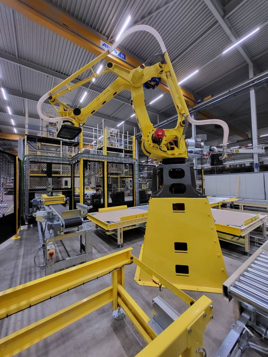 Willems hat erneut eine komplette Verpackungslinie in die USA geliefert, um Ballen aus Glaswolle-Einblasdämmung zu produzieren. Hochwertige Einblas-Glaswolle wird in zwei vollautomatischen Ballenpressen verpackt. Inbegriffen ist ein geschlossenes Bandtransportsystem zur Beschickung der Ballenpresse. Ebenfalls enthalten sind sämtliche Bühnenkonstruktionen und Sicherheitsplattformen. Eine Turn-Key-Lösung, um den Kunden so weit wie möglich zu entlasten. Die Linie umfasst zwei Ballenpressen. Inklusive Roboter-Stapelsystem, das die Ballen automatisch auf Kartonbögen stapelt. Ein Metalldetektionssystem und eine Kontrollwaage überprüfen die Ballen vor der Stapelung. Sobald die Ballen auf dem Bogen gestapelt sind, durchläuft die Ladung den Stretchhooder (Folienhaubenmaschine). Und schon ist alles perfekt verpackt und bereit für den Versand an die Kunden, die das Produkt für Dämmzwecke verwenden.
