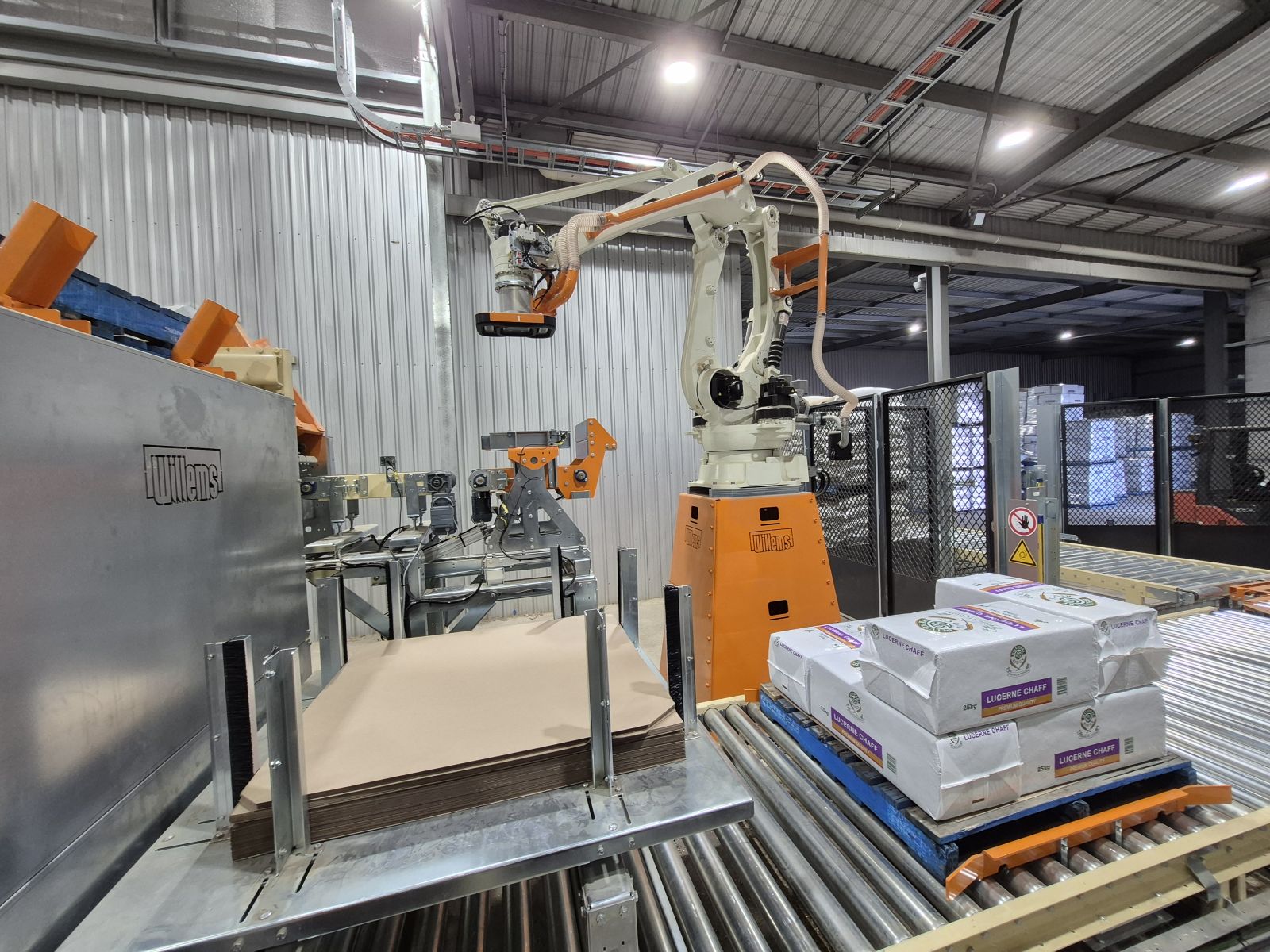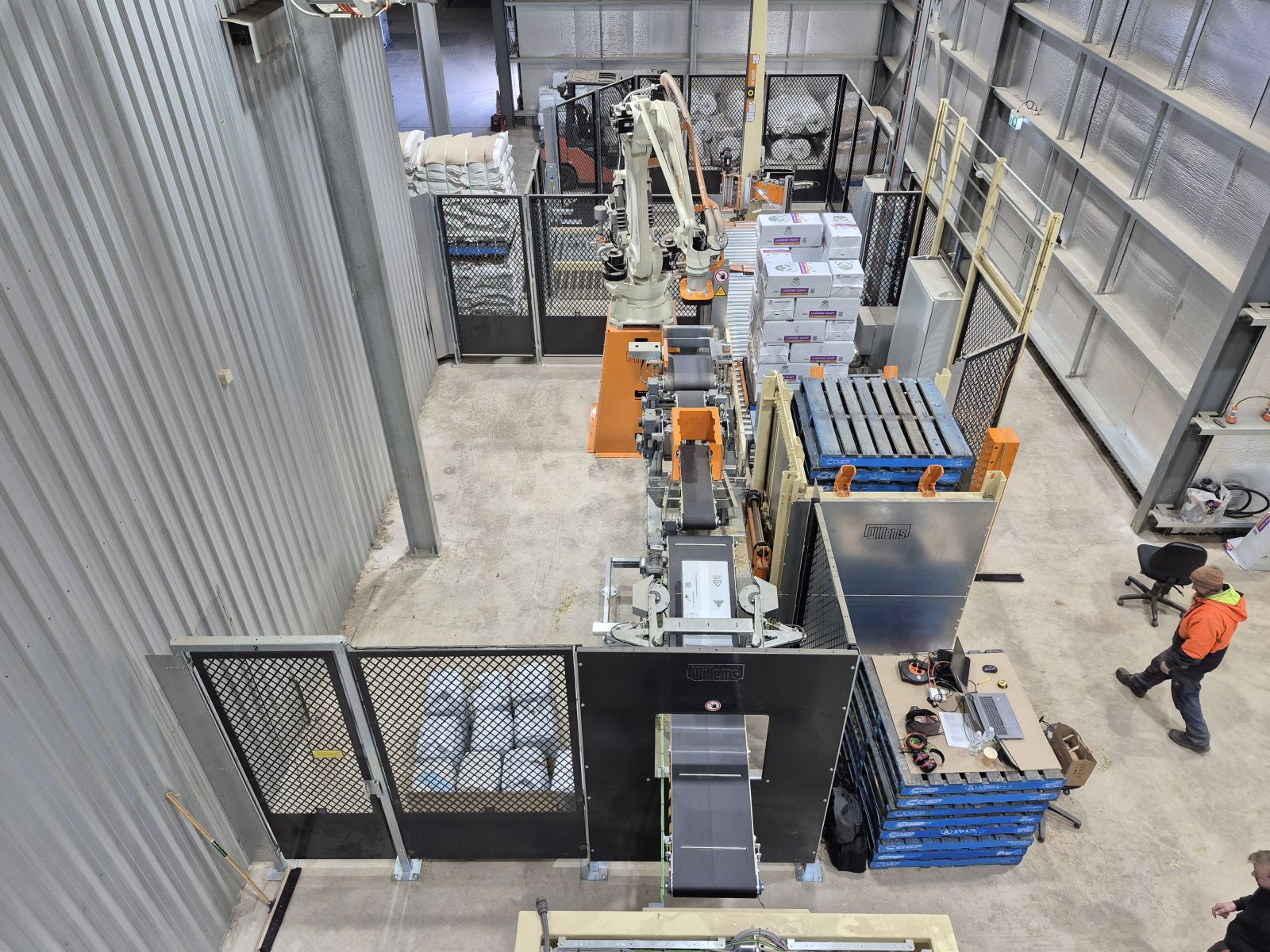 Da dieses Produkt beim Pressen schwer zusammenhält, erfordert es eine spezielle Methode zum Pressen und Verpacken. Willems hat hierfür ein spezielles Verfahren zur Verarbeitung dieser Art von Produkten entwickelt. Die Linie umfasst einen vollautomatischen Roboterpalettierer. Die Ballen werden im Quadrat auf eine Palette gestapelt, wobei in der Mitte eine Öffnung bleibt. Der Roboter platziert automatisch einen Ballen hochkant in diese mittlere Öffnung, sodass kein Platz auf der Palette verloren geht. Eine maximale Paletten Auslastung ist entscheidend für den weltweiten Versand solcher Produkte. Sobald die Ballen gestapelt sind, umwickelt ein Willems-Wickler die fertige Palette vollautomatisch. Somit ist alles bereit für den Versand: ein hochwertiges Produkt, logistisch korrekt auf Paletten gestapelt und gut geschützt in Folie verpackt. Wieder einmal auf dem Weg zu einem zufriedenen Endverbraucher des Produkts.