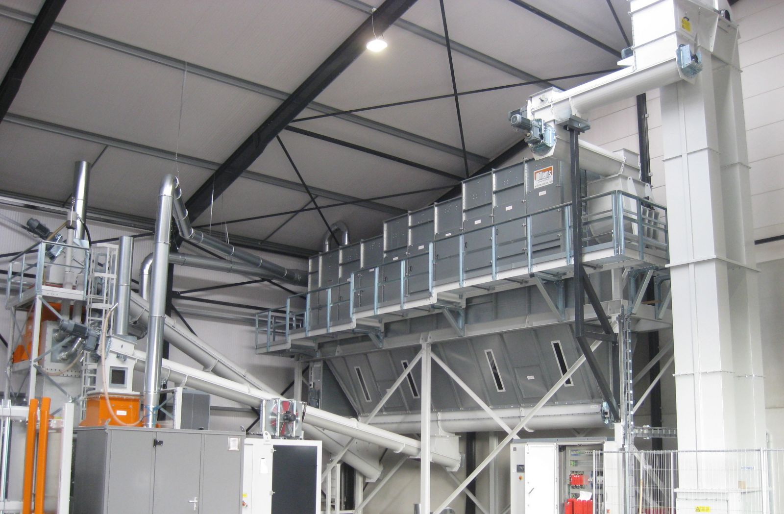 By means of an air jet everything that deviates (for example from wood shavings) is blown out of the system. Air-driven screening technology can be used for all types and sizes of dry substances.