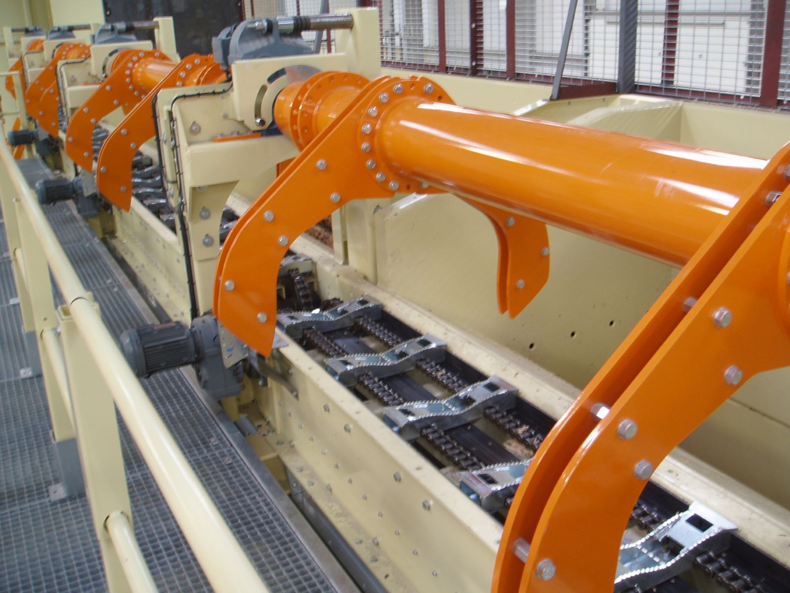 - With a crane logs can be placed on the chain conveyor for buffering and transporting the logs.