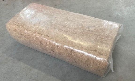 Willems supplies a complete packaging line for this that compresses these insulation flakes into bales, stacks these bales on pallets, and then packs the full pallets with a stretch cover. Perfectly packed and ready for reuse of the insulation.