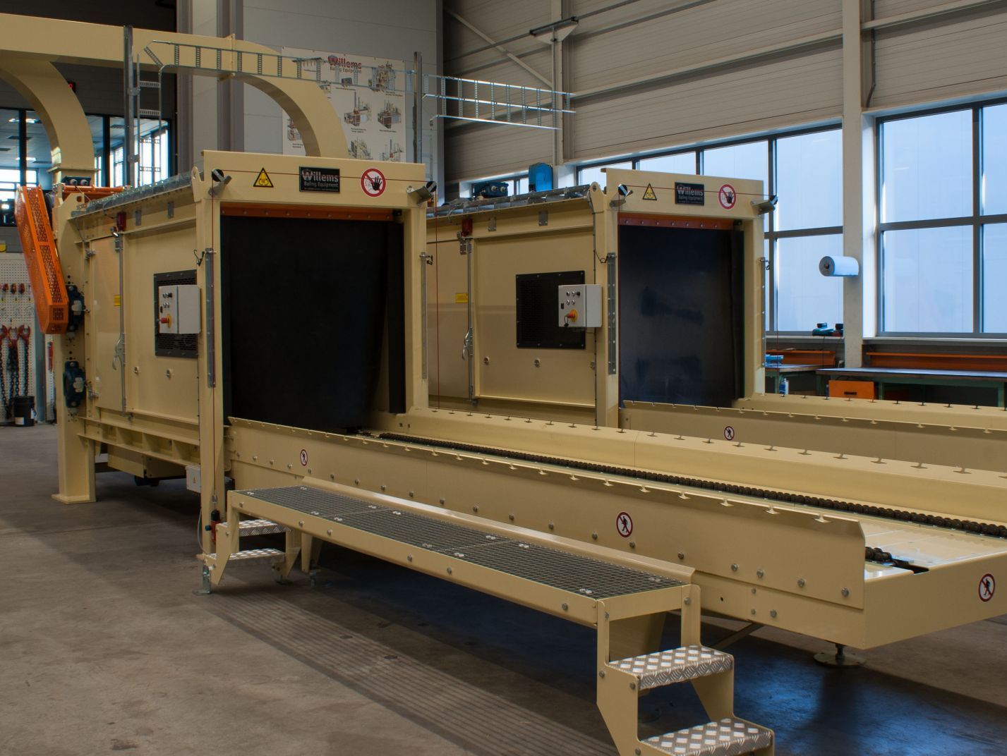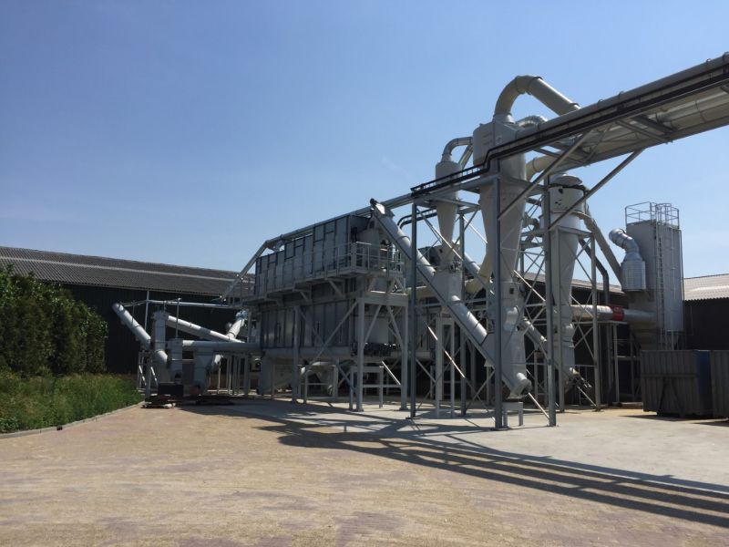 Le broyeur à marteaux affine le produit à la longueur désirée. Les cailloux et autres contaminants tombent et le produit lui-même passe à travers un tamis à tambour.