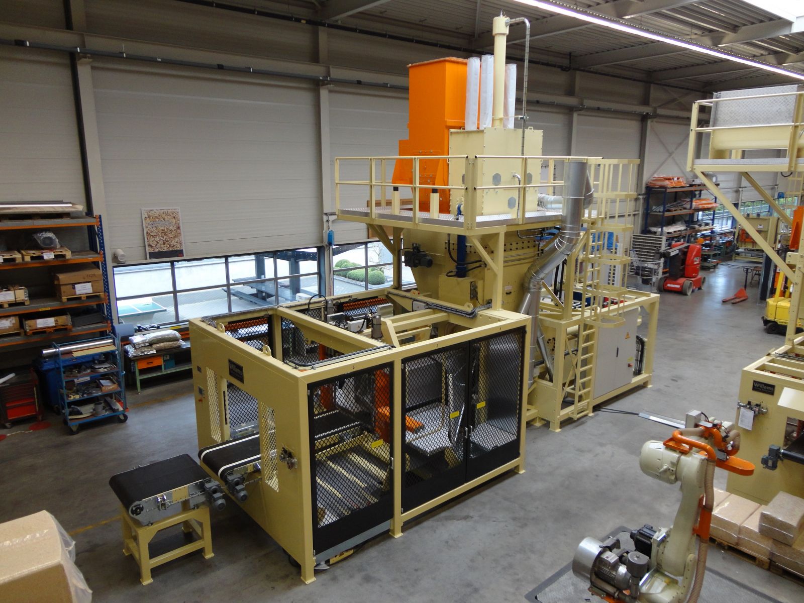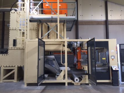 La presse à balles maxi convient en principe aux produits à faible densité, tels que les copeaux de bois, la fibre de verre et les matériaux isolants. D'autres produits peuvent également être pressés et emballés avec cette presse à balles. La presse à balles maxi peut également être parfaitement combinée avec, par exemple, un système d'alimentation et de déchargement avec un nettoyeur et un robot palettiseur. En utilisant ces machines, nous avons pu générer une réduction de 30 % des coûts de transport chez un client en France