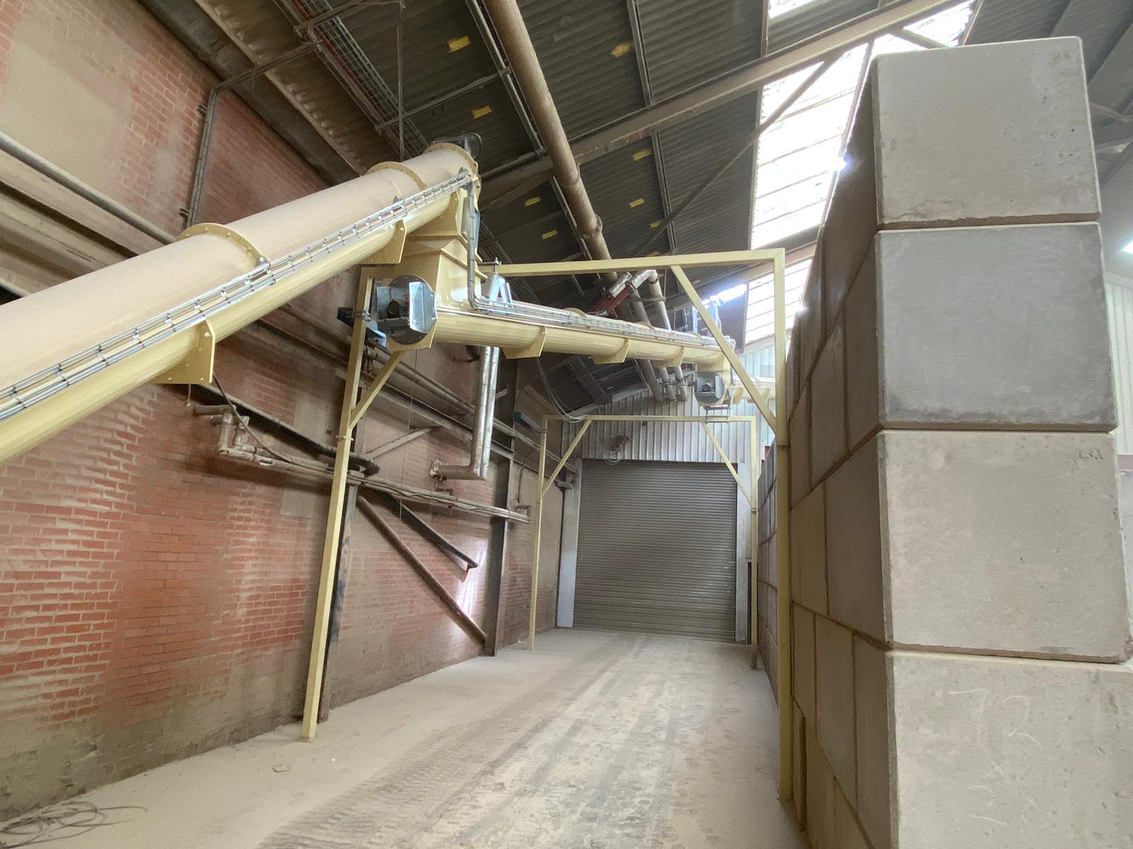 Dans cette usine (déchets), le bois est transformé en un produit composé de copeaux de bois et de sciure de bois. Le produit est très poussiéreux et le choix intelligent a donc été fait de diviser le hall en une zone propre et une zone poussiéreuse. Après la production, le produit est stocké dans la zone poussiéreuse.