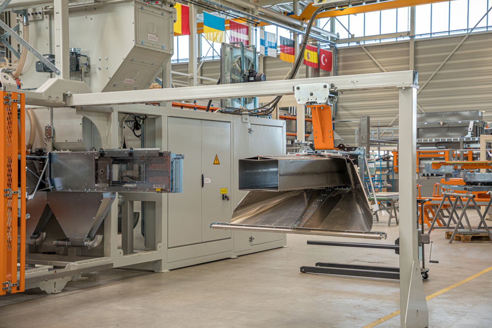 La presse à balles est équipée d'un système de changement rapide pour changer le tube et l'épaulement, afin de pouvoir fabriquer différentes tailles de balles avec la même presse. Le tube de rechange et l'épaulement sont suspendus dans un rail facile à utiliser, de sorte que le remplacement du tube est possible sans chariot élévateur ou autres aides, ce qui facilite également l'échange. La presse à balles est également équipée d'un double poinçon vertical, de sorte que des balles de même longueur peuvent être fabriquées avec et sans compactage de longueur avec la même presse. Le compactage longitudinal n'est pas souhaitable pour certains produits. Pour les autres produits, ce n'est qu'une exigence. Mais ils veulent toujours la taille de balle optimale sur le plan logistique. D'où ce concept avec lequel les deux principes pressants sont possibles, avec une seule et même presse à balles.