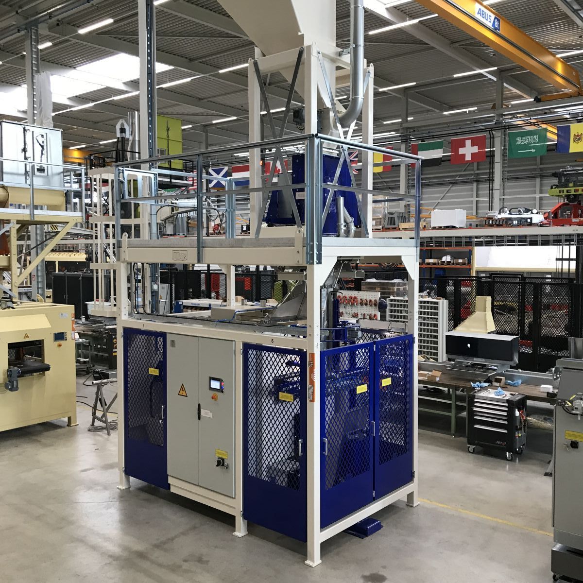 Delivery of new FFS machine for packing wood pellets. Also an extension of an existing robot palletiser, so that these bags can also be stacked.