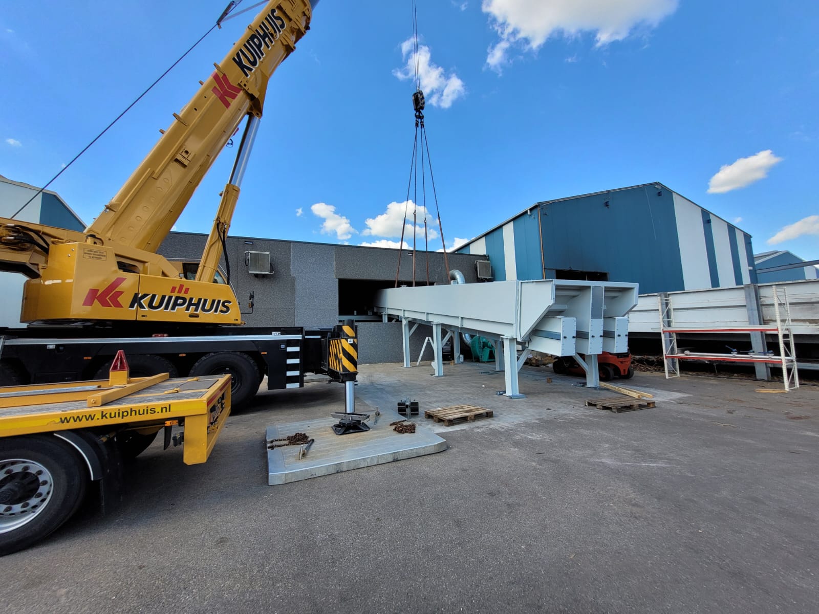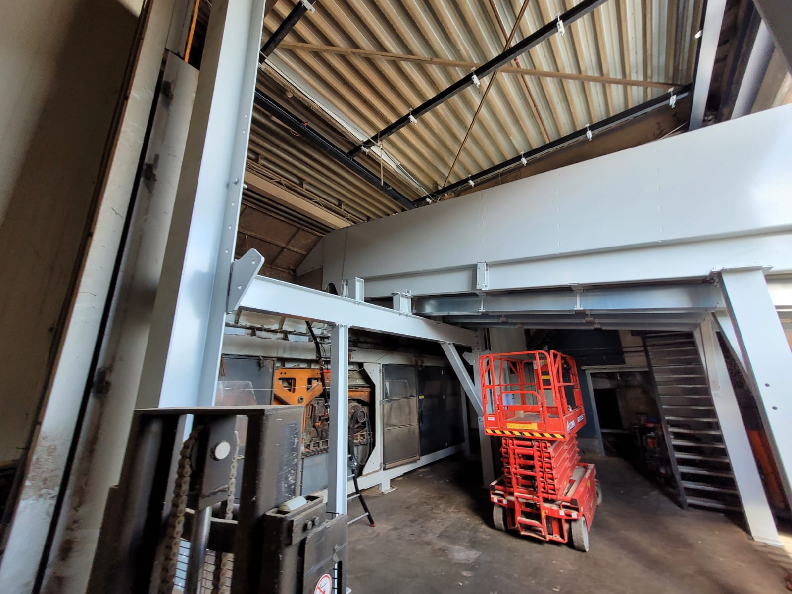 Il s'agit d'un système de chaîne double, permettant l'alimentation de deux rangées d'arbres côte à côte. Tout est conçu de manière extrêmement robuste, pour une longue durée de vie et un processus de production fiable. La première section de la ligne a un fond fermé. Plus loin dans la ligne, le fond est ouvert, permettant à la saleté de tomber hors de la ligne. Cette saleté est collectée et évacuée en dessous. Il n'est pas souhaitable que cette saleté entre dans la déligneuse. Tout cela a été installé dans les plus brefs délais, afin de minimiser le temps d'arrêt de la ligne.