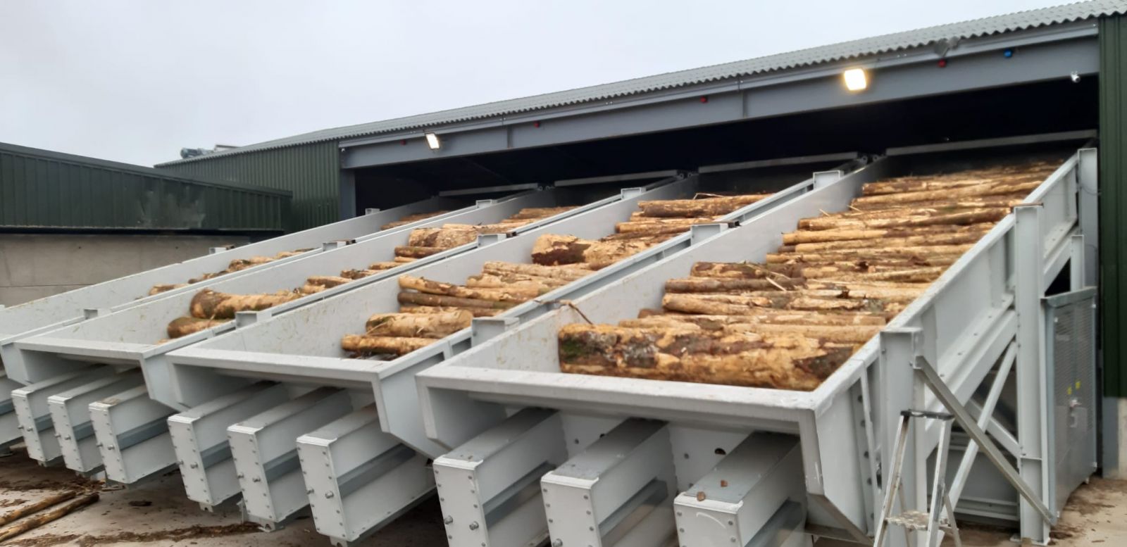- Boomstammen kunnen met een stepfeeder in een volgend systeem gedoseerd worden.