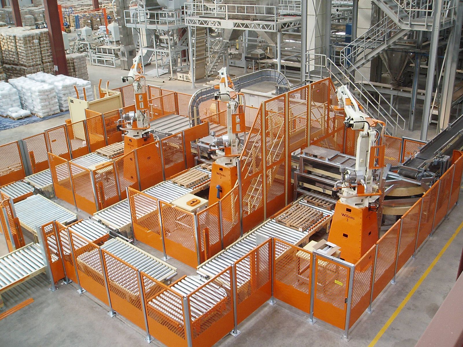 Sinds 1997 is Willems baling equipment officieel dealer van Kawasaki Palletiseer robots. Willems heeft in deze periode een ruime ervaring opgebouwd betreffende het handelen van balen, zakken, dozen, pallets en dergelijke. We hebben al meer dan 150 robot palletiseer-installaties gebouwd. De robot met rollenbanen kan vanuit de schakelkast met behulp van het Siemens Touch Screen bediend worden.