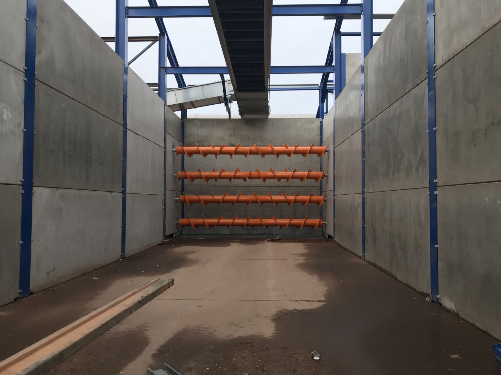 - 3 buffer / aanvoer bunkers, met respectievelijk een inhoud van ca. 900 m3, 80 m3 en 40 m3 aan houtkrullen.