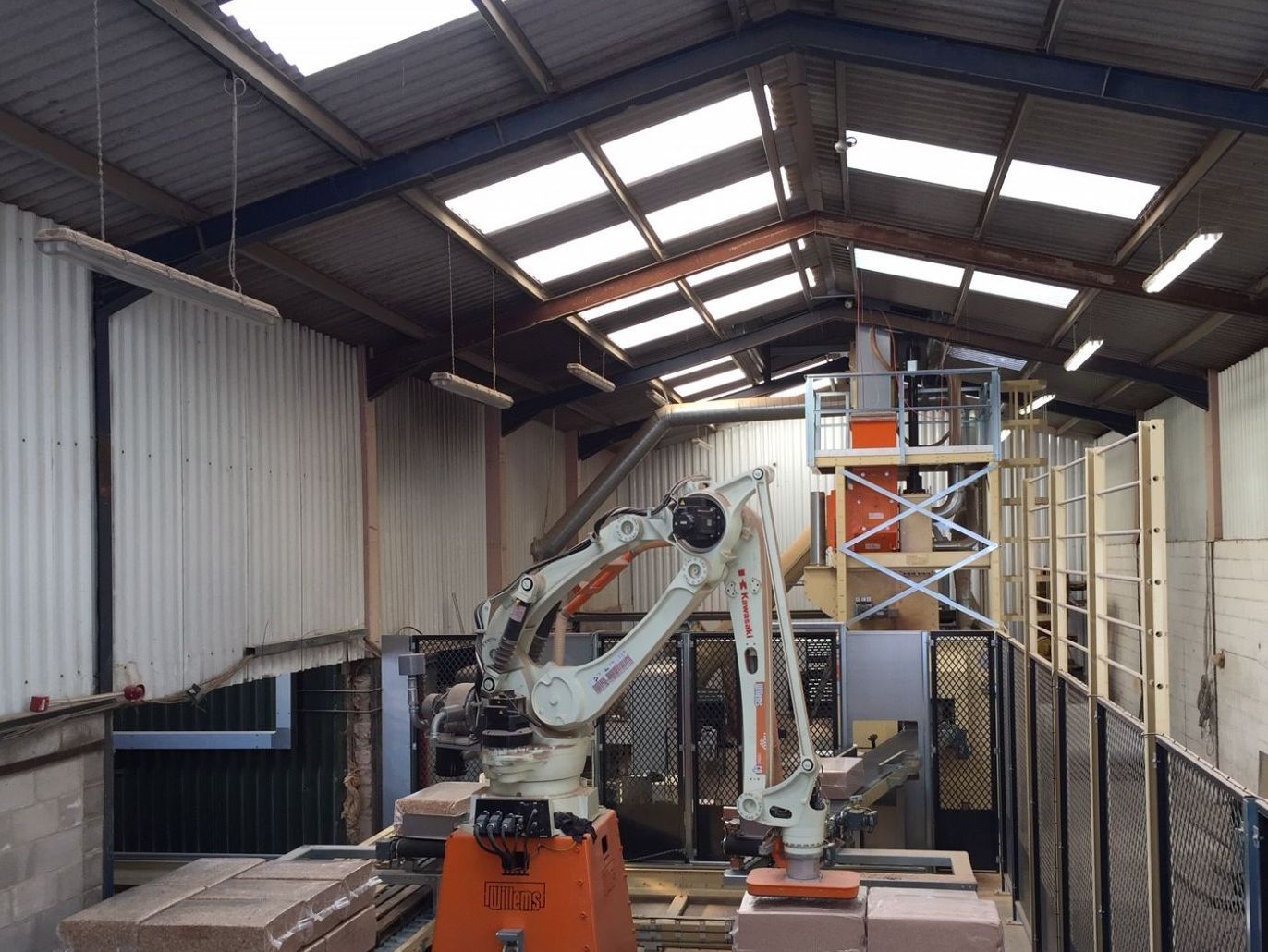 Willems baling heeft een complete fabriekslijn geleverd bestaande uit een Baler HL, een bunker en een robot pallitiser.