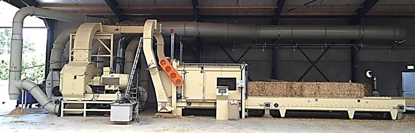 Stro preparatie fabriek voor het hakselen en zeven van stro.